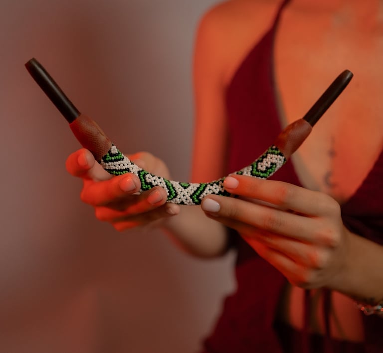 Hapé Medicine – A sacred Amazonian snuff made from finely ground tobacco and medicinal plants. It is gently blown into the nostrils to clear the energetic field, ground the mind, and open spiritual perception.