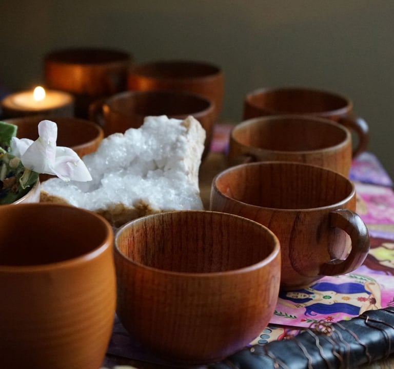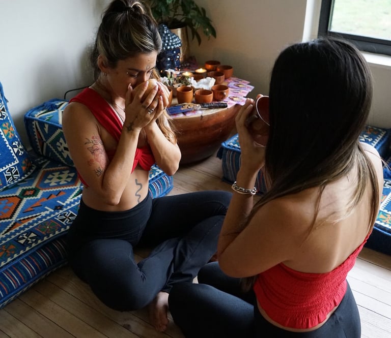 En todos nuestros círculos compartimos una ceremonia de cacao para abrir el corazón y una meditación guiada con sound healing para armonizar cuerpo y alma.